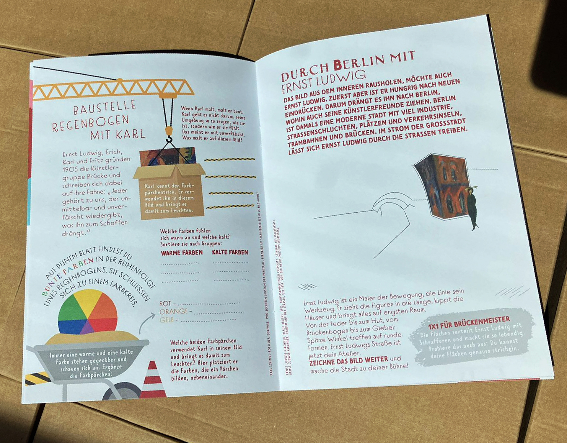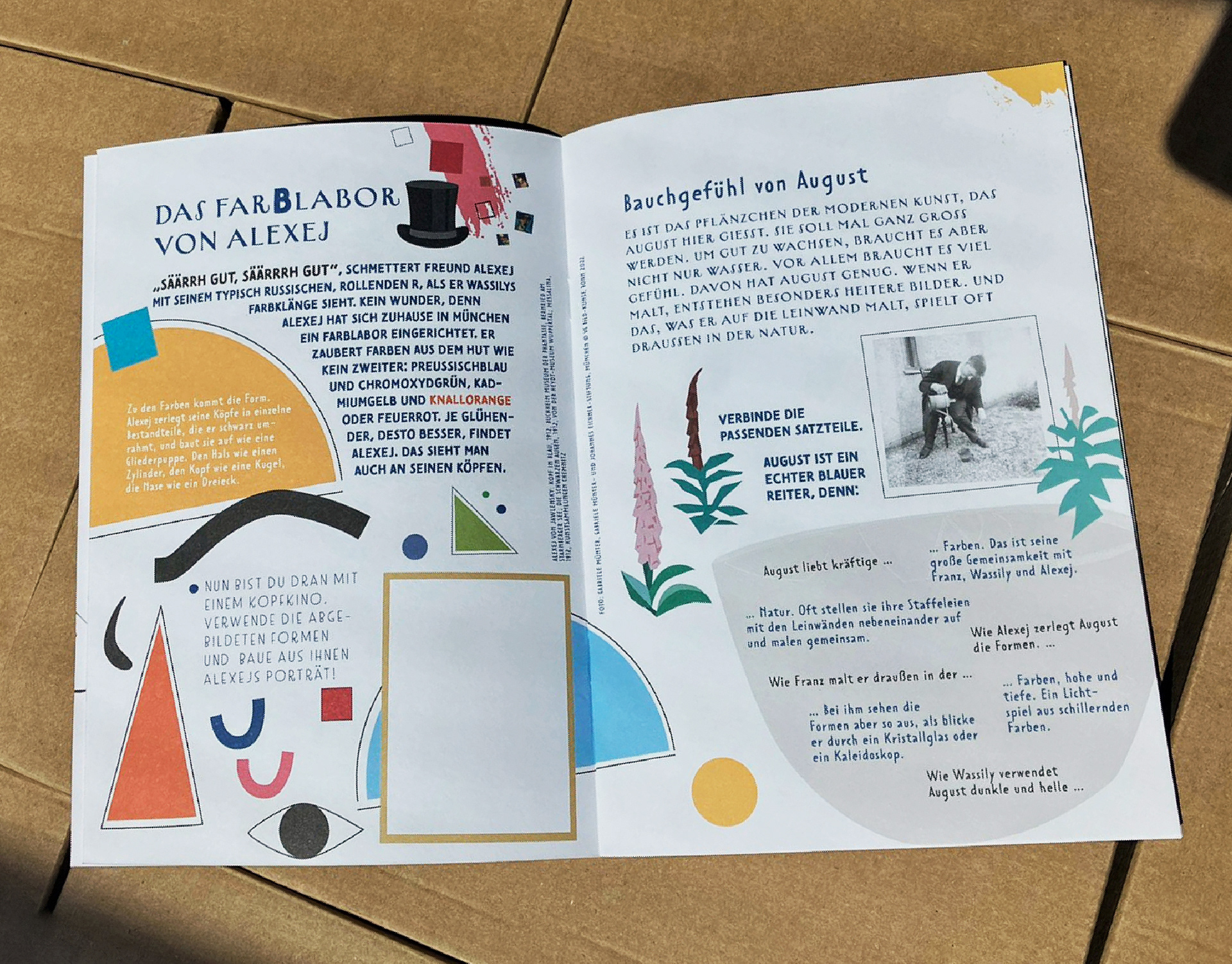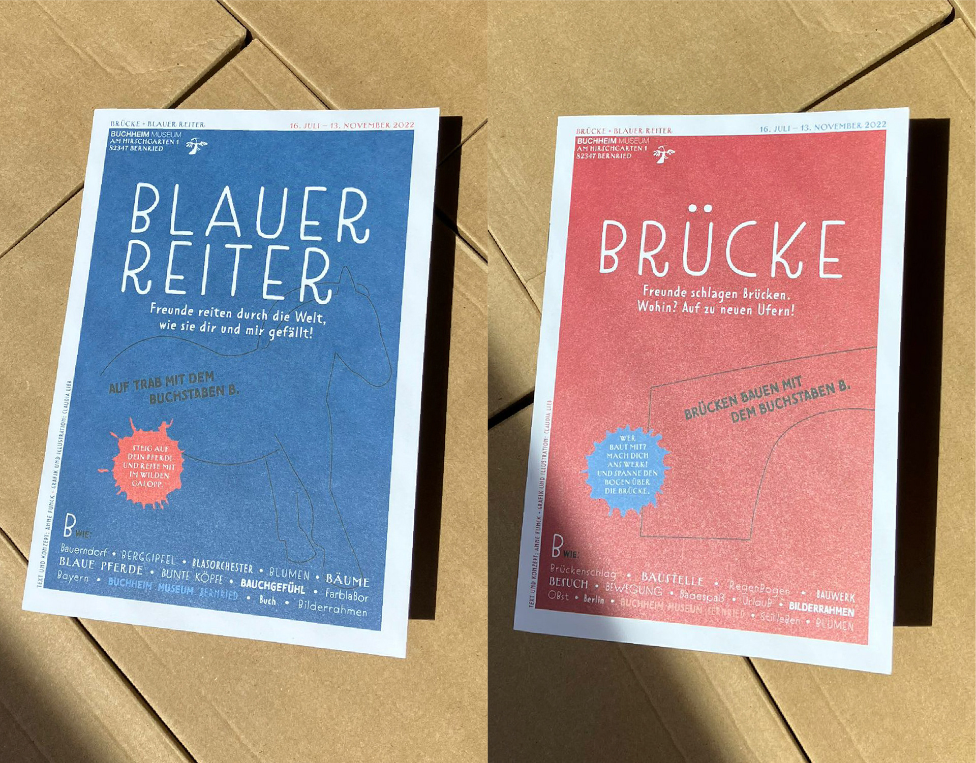 Gestaltung des Kinderprogrammheft zum Mitmachen anlässlich der Ausstellung "Brücke-Blauer Reiter" im Buchheim Museum Bernried 2022, in Zusammenarbeit mit Anne Funck.